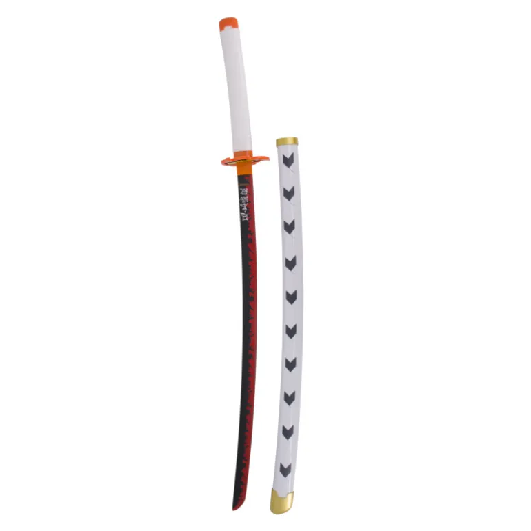 Es una réplica de la espada que lleva Rengoku Kyoujurou durante los episodios que mide un total de 104 cm y con la hoja de bambú, mango con encordado de polipiel blanca y vaina blanca con detalles.