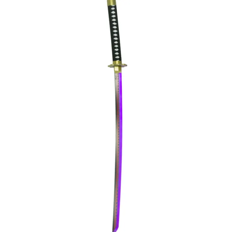 Es una réplica de la espada Shusui que lleva Zoro durante los episodios que mide un total de 104 cm y con la hoja de bambú negra con dentado en rojo, mango con encordado negro sobre imitación de piel de raya blanca.
