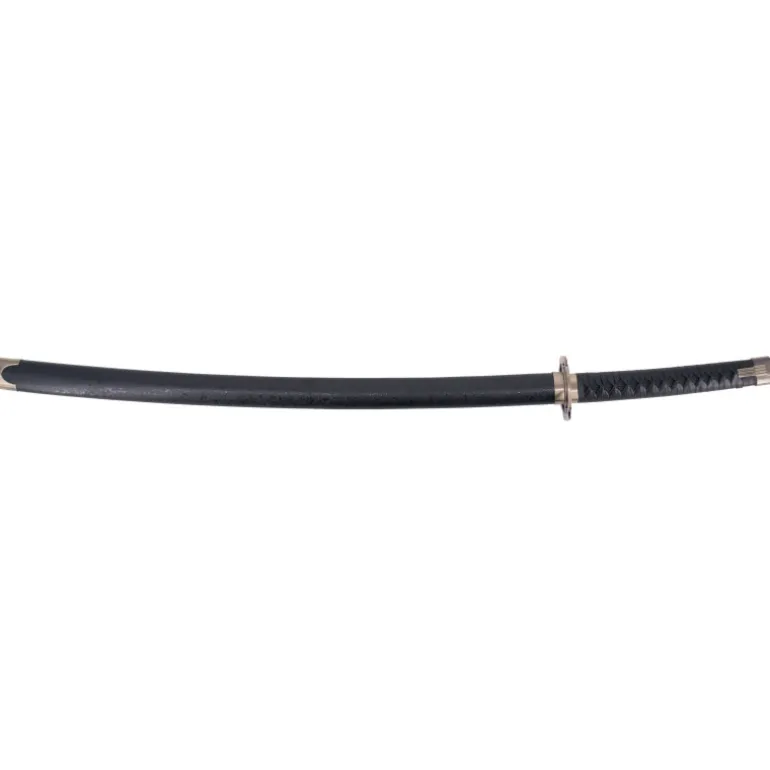 El mango encordado de polipiel negra le da un aspecto elegante y un agarre cómodo y seguro. Además, se incluye una vaina negra para proteger y almacenar de manera segura la katana. Incluida en la compra, se incluye también un soporte expositor para mostrar esta pieza de colección de manera elegante y orgullosa.