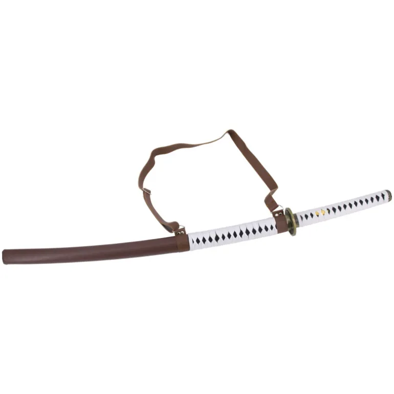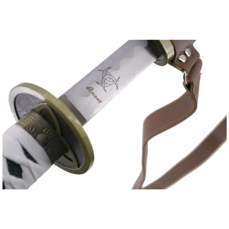Es una réplica de la espada que lleva Michonne durante los episodios que mide un total de 103 cm y con la hoja de acero sin filo, vaina de curpiel marrón con encordado blanco y cinta para colgar en la espalda, mango encordado blanco.