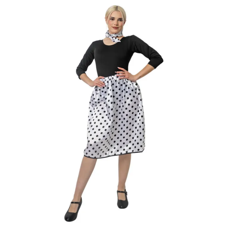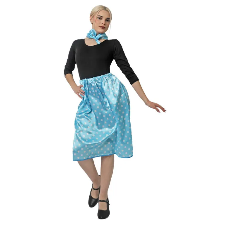 Evoca el estilo icónico de los años 50 con este encantador kit de rasete para mujer. El conjunto incluye una falda y un pañuelo, perfectos para un look retro auténtico. La falda está disponible en colores vibrantes como rojo, negro, blanco, celeste y fucsia, todos adornados con clásicos lunares blancos o negros que añaden un toque vintage. Con un contorno ajustable de entre 56 cm y 116 cm y un largo de 62 cm, esta prenda se adapta cómodamente a diversas tallas. El pañuelo, de 48 cm de largo y 46 cm de ancho, complementa perfectamente cualquier atuendo.