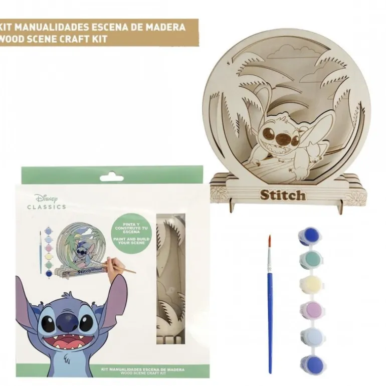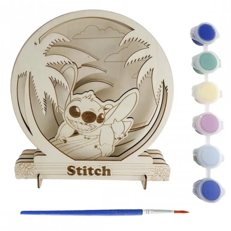 Descubre el fascinante kit de manualidades en madera de Stitch, diseñado para los amantes de Disney que desean explorar su creatividad. Este set incluye cuatro escenas de madera que forman una encantadora representación de Stitch rodeado de elementos tropicales, como palmeras y olas. Cada pieza está delicadamente grabada, proporcionando un lienzo perfecto para personalizar.