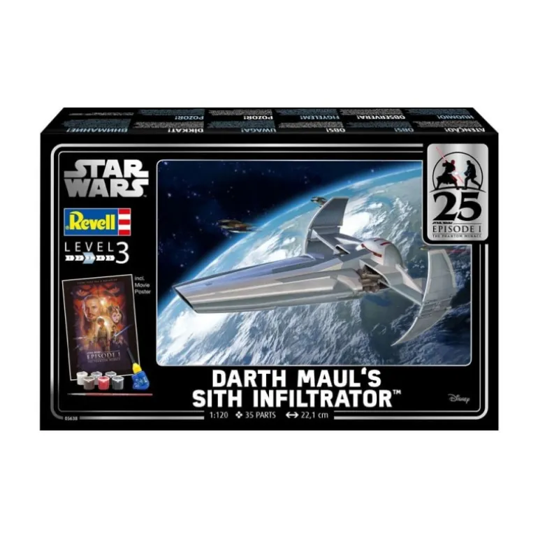Con unas dimensiones del empaque de 24,8 x 38,8 x 7 cm y un peso de 467 gramos, es apto para mayores de 10 años. Este kit ofrece la oportunidad perfecta para revivir la emoción de «La Amenaza Fantasma» y celebrar su 25º aniversario.