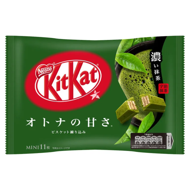 En esta ocasión tenemos un snack conocido por todos, es el famoso Kit-Kat, que en Japón tiene un montón de variedades distintas, como ocurre con otros productos, y es que los japoneses son unos auténticos gourmets del snack. En este caso te traemos uno de los sabores más populares y que sin duda te sorprenderá porque está realmente conseguido: son los Kit-Kat con sabor a té matcha, ese té de color verde que tanto consumen los japoneses. Además, vienen en un formato muy cuqui, en pequeños paquetitos dentro de una bolsa que total contiene 12.