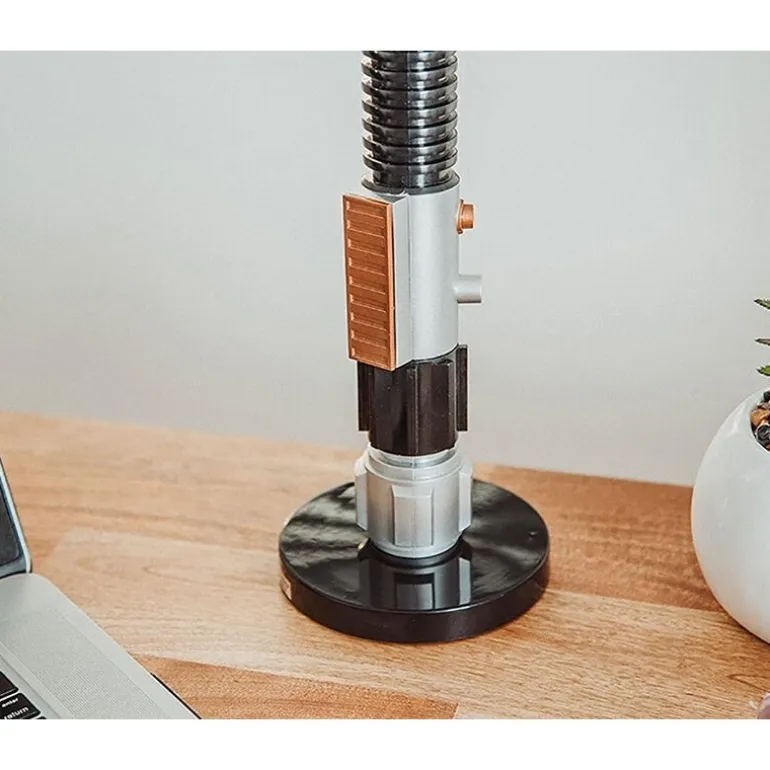 Este producto con licencia oficial de Star Wars garantiza autenticidad y calidad. La base firme y el acabado detallado en color plateado, negro y marrón recrean a la perfección el emblemático arma del Jedi. Perfecto para coleccionistas, amantes de la saga o como un regalo único y práctico, esta lámpara brinda un toque de aventura galáctica a tu espacio mientras ilumina suavemente el ambiente.