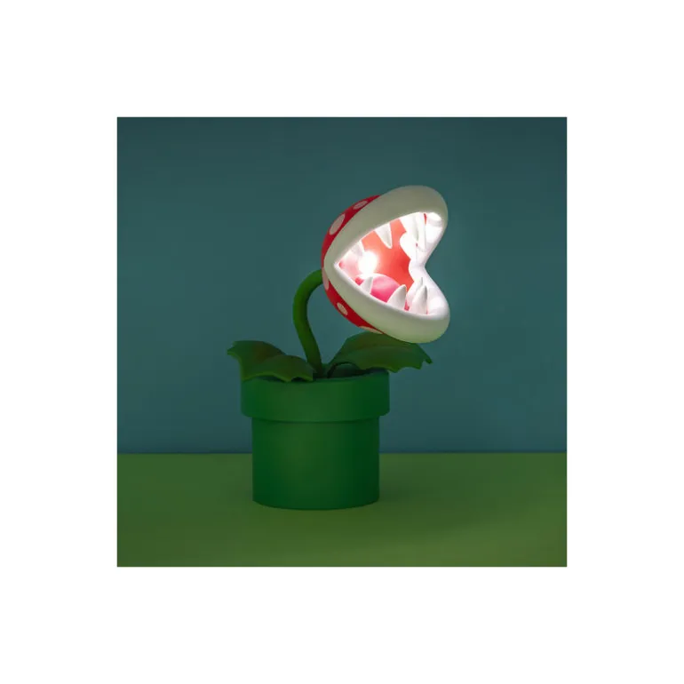 Es una lámpara tipo flexo que reproduce a la perfección esa planta carnívora que tantas veces hemos esquivado en la saga de videojuegos de Nintendo, Super Mario Bros.