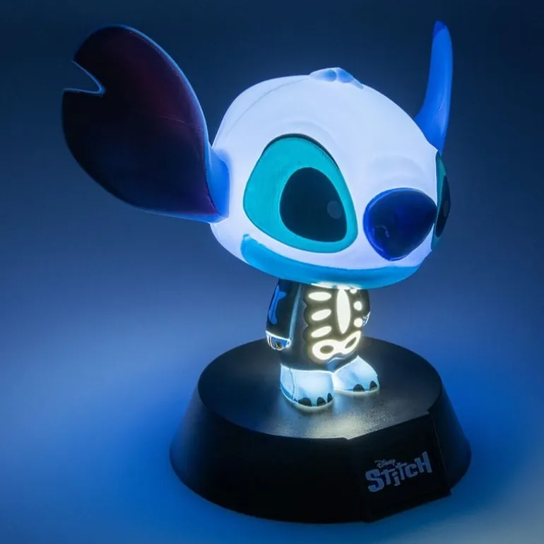 Convierte la temporada de Halloween en una experiencia intergaláctica con esta encantadora lámpara de Stitch, el querido personaje de Disney, vestido de esqueleto. Con una altura de 11 cm, esta figura luminosa en 3D transforma cualquier espacio con su suave y cálido resplandor. ¡Perfecta para los amantes de Lilo & Stitch!