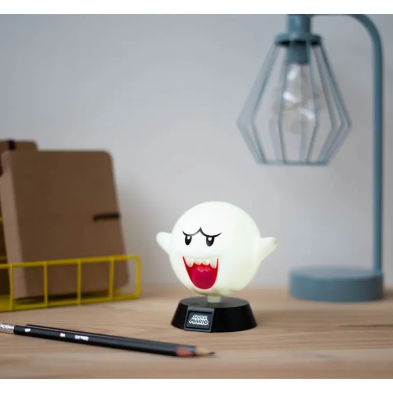 La Lampara Icons Nintendo Super Mario Boo es un producto de alta calidad, con una fabricación en PVC que le brinda durabilidad y resistencia. Esta lámpara con licencia oficial es un producto auténtico y exclusivo para los verdaderos fans de Nintendo.
