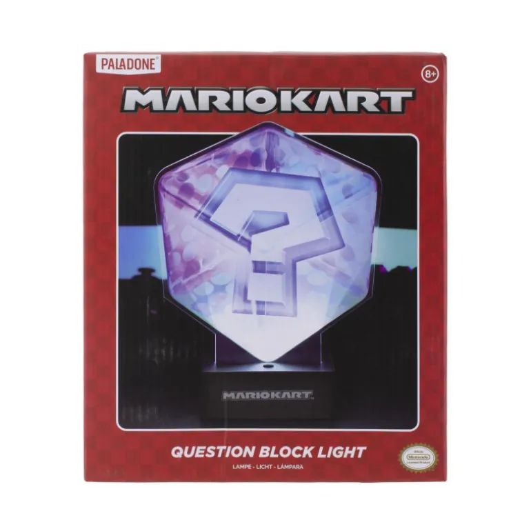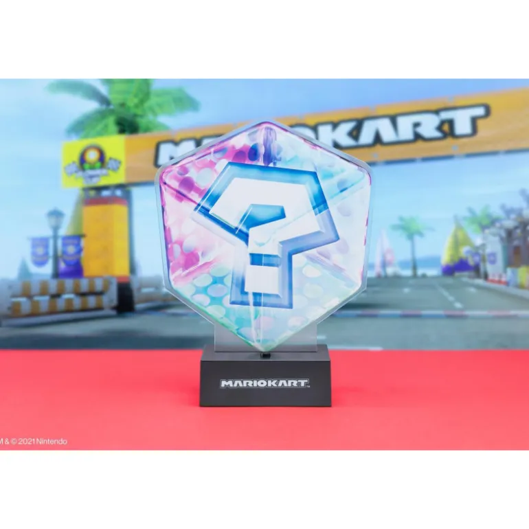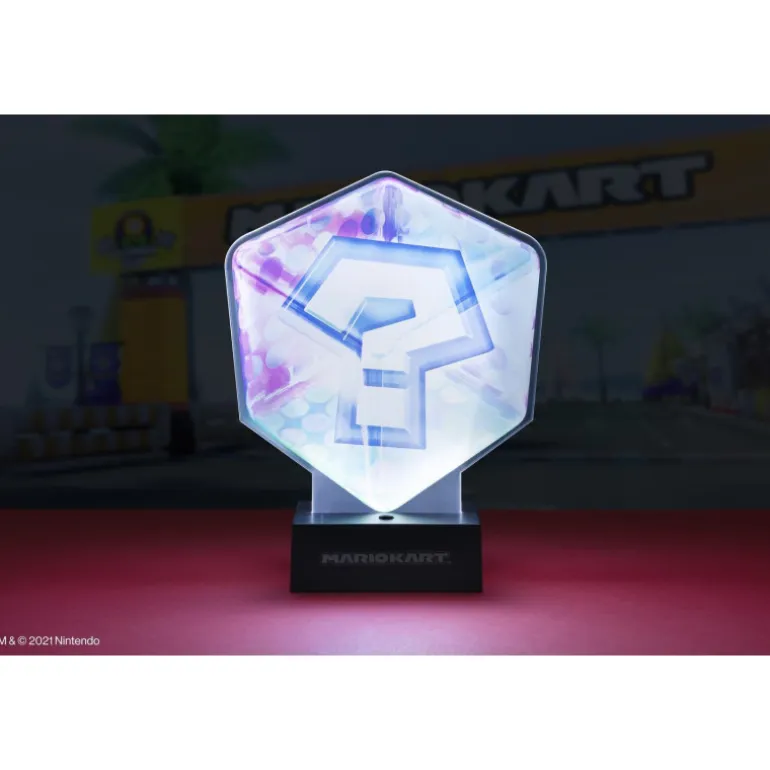 Su diseño en forma de bloque de interrogación es un verdadero icono de la serie Mario Kart, otorgándole a la lámpara un carácter distintivo y divertido. Además, tiene una base sólida y estable que le permite sostenerse en cualquier superficie sin peligro de caídas.