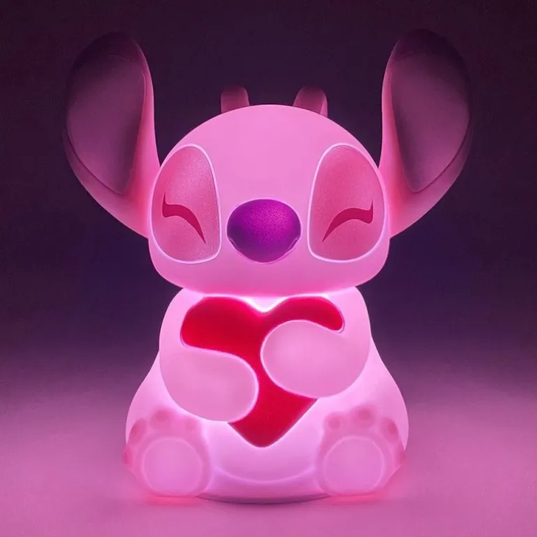 Descubre la lámpara táctil de Disney Angel de Enesco, una pieza encantadora y funcional que iluminará cualquier espacio. Con su diseño en forma de Angel, este adorable personaje de Lilo & Stitch, irradia un brillo suave y acogedor. La lámpara es de color rosa y presenta detalles pintados con precisión, como los grandes ojos cerrados y un tierno corazón rojo que sostiene entre sus patas.