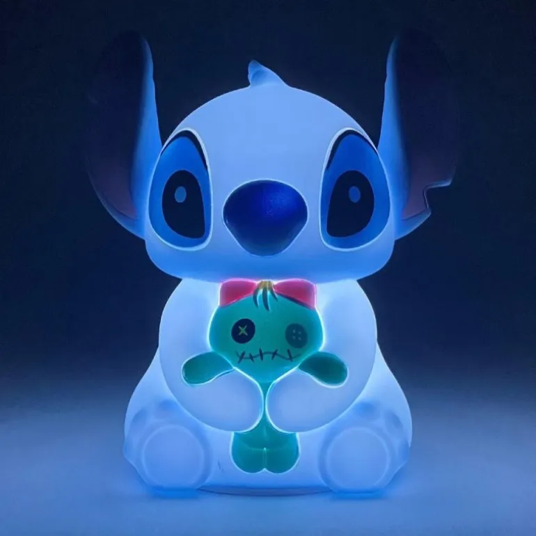 La lámpara táctil Enesco Disney Stitch es un encantador accesorio decorativo que combina funcionalidad y diseño. Con la forma del entrañable personaje Stitch, esta lámpara ofrece un toque mágico a cualquier espacio. Realizada en tonos de azul claro, destaca por sus grandes orejas rosadas y detalles finamente acabados. Stitch sostiene a Scrump, su inseparable muñeco, lo que añade un plus adorable a su diseño.