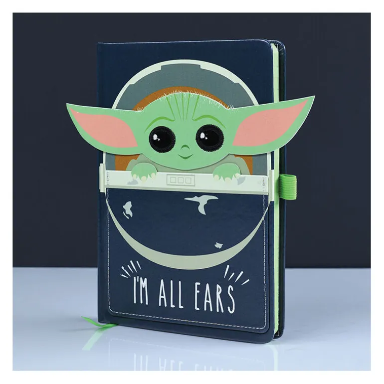 ¡¡Una libreta de Baby Yoda que es una maravilla!! Es de tamaño aproximadamente A5 (14 x 21 cm) y tiene un diseño alucinante basado en The Chlid, el protagonista de The Mandalorian y uno de los seres más adorables del universo Star Wars.
