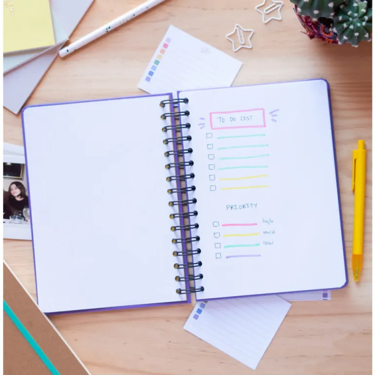 Una libreta que queda realmente elegante, con unos detalles muy cuidados, que puedes llevar en cualquier lado y con la que estarás deseando dibujar o escribir algo y así tener una excusa para mostrarla. Tiene tapa dura, cierre con banda elástica y un interior punteado con greca.