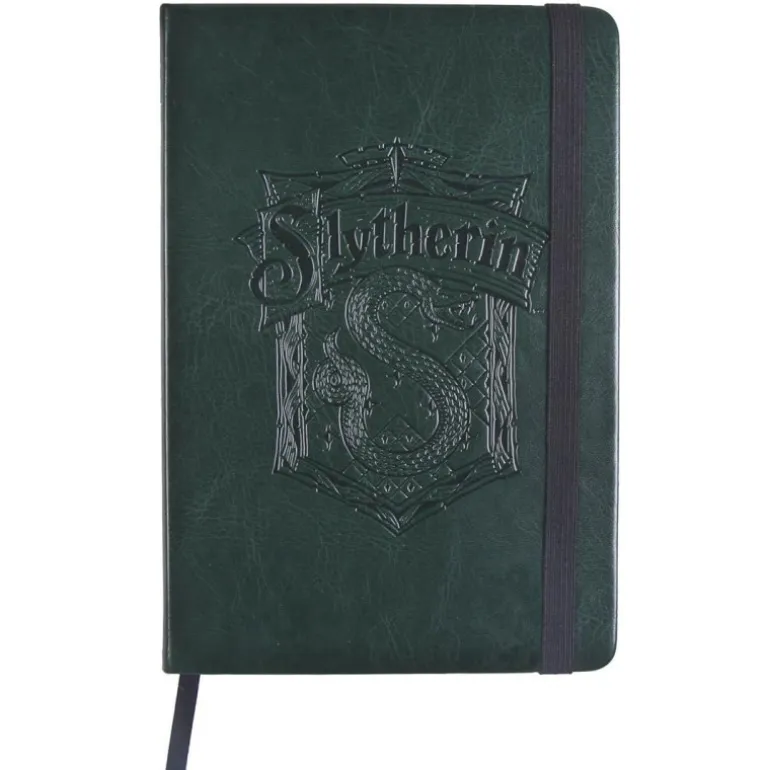 Una libreta que destaca nada más la ves por su color verde y basado en la casa Slytherin con el escudo de la casa. Una libreta que puedes llevar en cualquier lado y con la que estarás deseando dibujar o escribir algo y así tener una excusa para mostrarla. En su interior, podrás encontrar un montón de hojas en blanco.