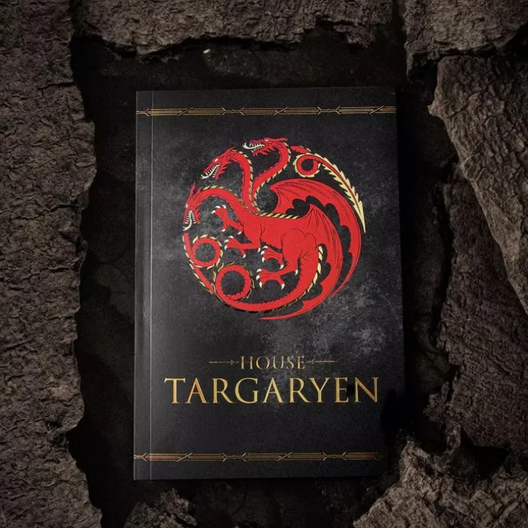 La libreta de tapa blanda Targaryen es un imprescindible para los seguidores de Juego de Tronos. Con unas medidas de 21cm x 14,5cm x 0,7cm, su diseño presenta el icónico emblema de la Casa Targaryen en un elegante color rojo sobre un fondo negro. Esta libreta, con su cubierta de apariencia robusta pero ligera, es perfecta para capturar tus pensamientos, notas o cualquier idea inspirada en el mundo de Westeros. En el interior, las páginas están decoradas con un sutil borde inspirado en el universo de la serie, ideal para darle un toque personal y temático a tus escritos. Ya sea para un coleccionista o para quien busca un regalo único, esta libreta combina funcionalidad y diseño atractivo, siendo un verdadero homenaje a una de las casas más emblemáticas de la serie.