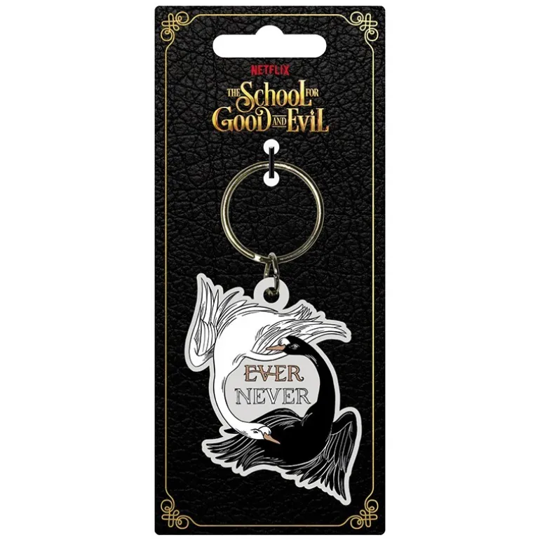 Descubre el llavero del Logo Escuela del Bien y del Mal, un accesorio que fusiona elegancia y originalidad. Este producto con licencia oficial de 4,5×6 cm es perfecto para los amantes de la serie de Netflix. El diseño presenta un cisne blanco y otro negro entrelazados, simbolizando el equilibrio entre el bien y el mal, con las palabras ‘EVER’ y ‘NEVER’ en el centro. Fabricado con materiales de alta calidad, este llavero es resistente y duradero, ideal para darle un toque especial a tus llaves, mochila o bolso. Un regalo perfecto para cualquier fan que busca un accesorio único y práctico. No te quedes sin el tuyo.