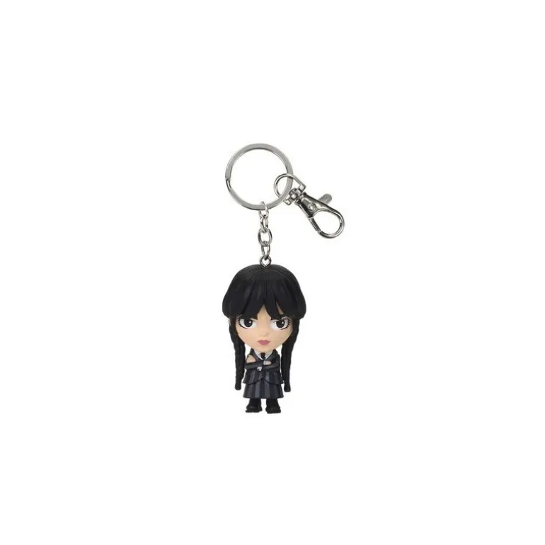 Este encantador llavero figurativo de PVC captura a la perfección la esencia del personaje Miércoles. Con un diseño detallado y expresivo, presenta su característico cabello oscuro y dos trenzas distintivas, acompañado de su icónico atuendo en tonos oscuros. Fabricado por SD TOYS, garantiza calidad y autenticidad, siendo un producto con licencia oficial.