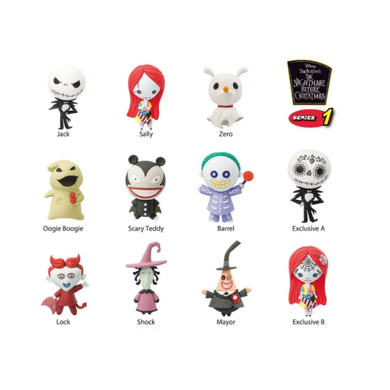 Un llavero 3D sorpresa inspirado en el universo de Tim Burton de Pesadilla Antes de Navidad con muchos de sus míticos personajes clásicos.