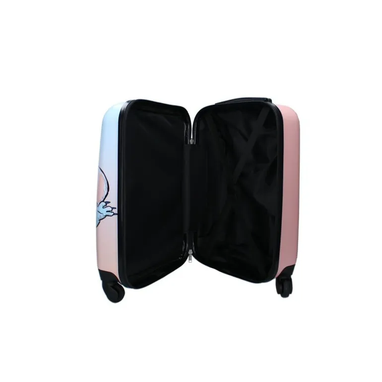 La maleta cabina Stitch Corazón Ohana Forever es la elección perfecta para aquellos que buscan un diseño original y divertido. Con un tamaño ideal para llevar como equipaje de mano en tus viajes, esta maleta de la marca VADOBAG es fabricada en ABS/PC, lo que la hace resistente y duradera.