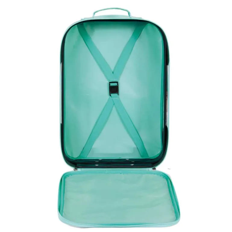 El interior de la maleta Angel y Stitch Love está diseñado para asegurar que las pertenencias de los pequeños estén organizadas y en su sitio durante el viaje. Dispone de cintas elásticas interiores para mantener todo bien ajustado, asegurando una protección eficaz.