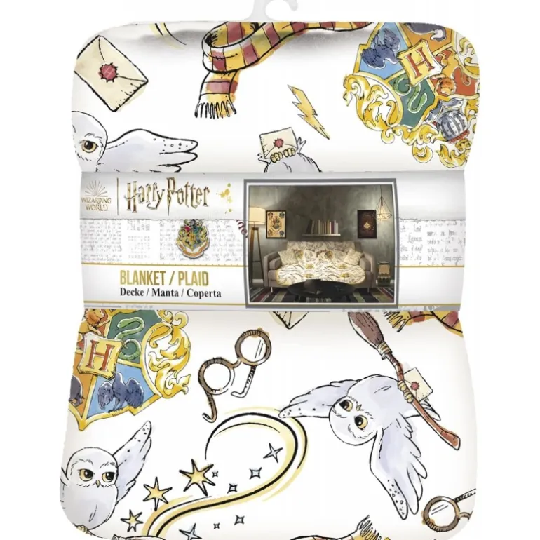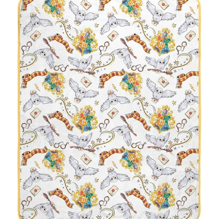 Con una cuidada impresión, muestra icónicos elementos como el escudo de Hogwarts, las gafas de Harry, la lechuza Hedwig y la carta de Hogwarts, sobre un fondo color marfil que evoca el ambiente místico de la saga. Sus medidas de 150 X120cm hacen de esta manta un accesorio ideal para decorar cualquier espacio.