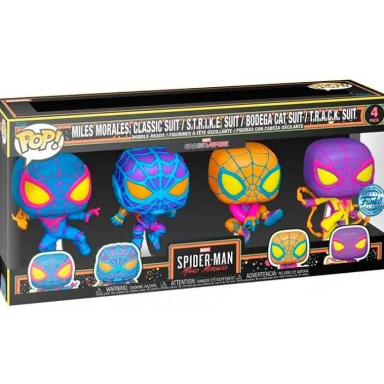 Fabricadas por Funko, cada figura mide 9 cm de altura y está cuidadosamente detallada para resaltar las características icónicas de Miles Morales en diferentes aspectos de su universo. El pack completo tiene unas dimensiones de 16,3 x 34,9 x 9,5 cm y un peso total de 504 gramos, garantizando una pieza central imponente para cualquier colección.