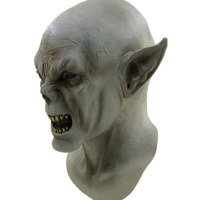 Transforma tu presencia con la formidable máscara de látex Caitiff de la línea Vampires, una creación de la prestigiosa marca GHOULISH. Esta máscara, con licencia oficial, ofrece un diseño impactante que reproduce con precisión las características de un vampiro aterrador. De color grisáceo, presenta detalles realistas como orejas puntiagudas, arrugas pronunciadas y una expresión feroz con colmillos prominentes, haciendo de esta máscara un complemento ideal para cualquier evento temático o de terror.