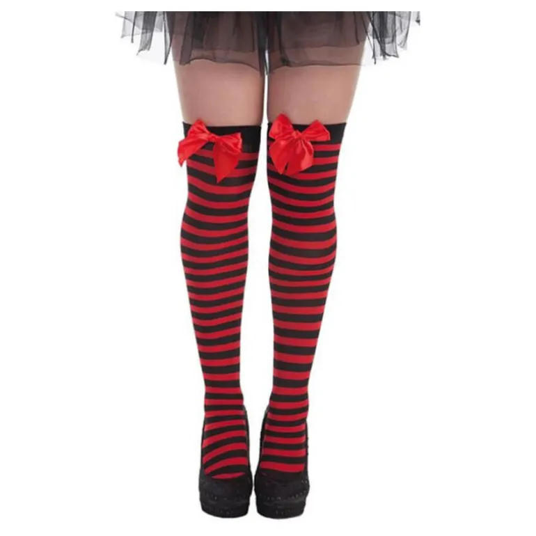 Medias con Lazo y a Rayas Rojas Negras. Perfecto en fiestas del terror como Halloween. ¡Compra en un comercio online que cumple con todas las normativas de la U.E., Compra en !