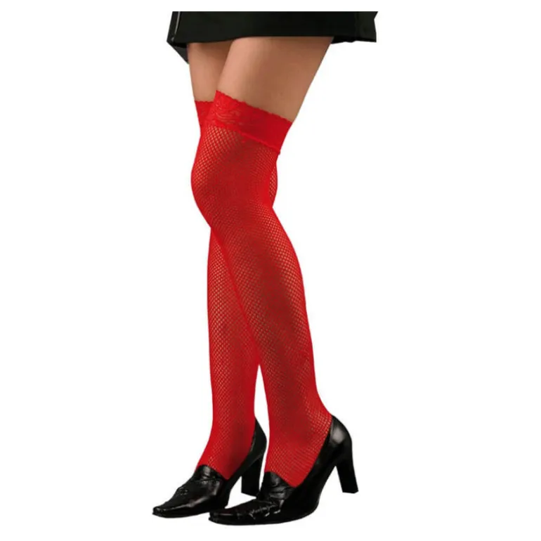 Medias Rojas de Rejilla con Liga. Artículo perfecto para Halloween y fiestas del terror. ¡Compra en y apoya el comercio español!