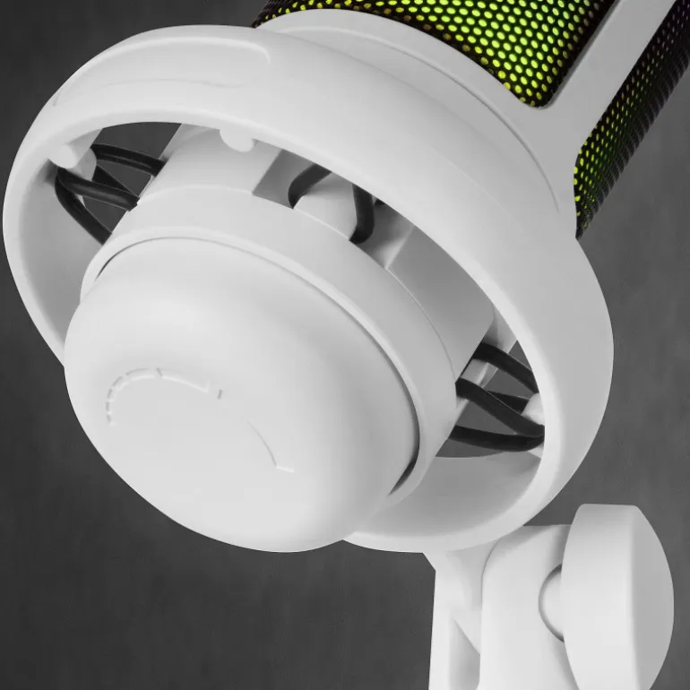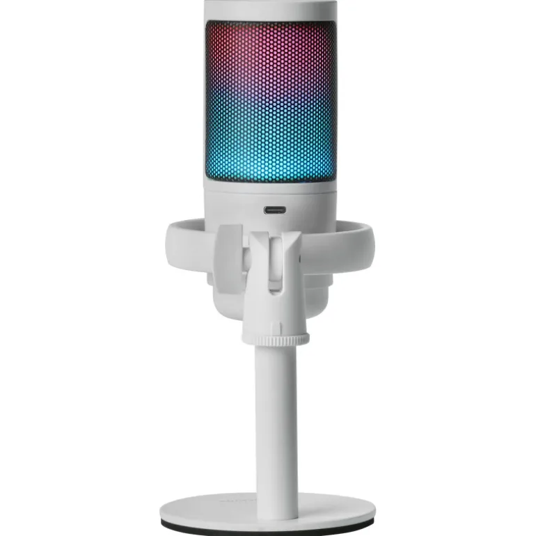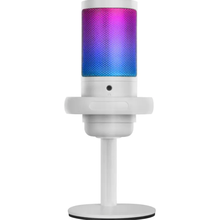 El micrófono MMIC-SE Blanco también cuenta con una iluminación ARGB que añade un toque de estilo a tu configuración de grabación. Sus controles táctiles intuitivos, pop-filter de metal, pie de mesa de metal y sistema antivibraciones garantizan una experiencia de grabación profesional y sin complicaciones.