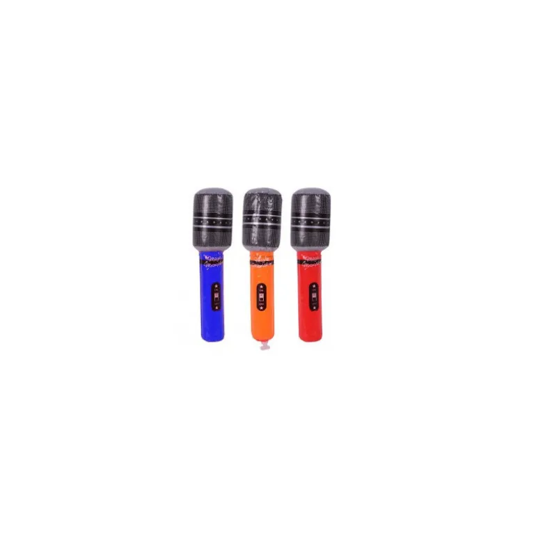 Micrófono Hinchable en colores surtidos de 25 cm. Precio por unidad. Si quieres algún modelo en especial, déjalo escrito en observaciones y si lo tenemos te lo haremos llegar, si no, te enviaríamos uno de los que dispongamos.