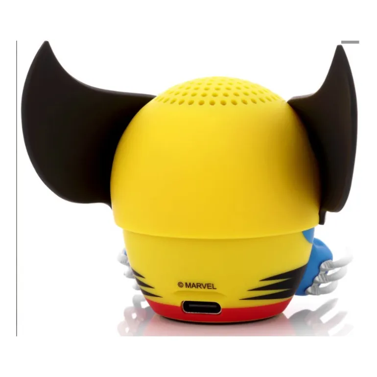 Descubre el Mini Altavoz Bitty Boomers Lobezno, un producto con licencia oficial que combina estilo y funcionalidad en solo 5 cm de altura. Este altavoz inalámbrico está diseñado con la icónica imagen de Lobezno, mostrando su casco negro con detalles amarillos y una expresión audaz que encantará a los seguidores del universo Marvel.