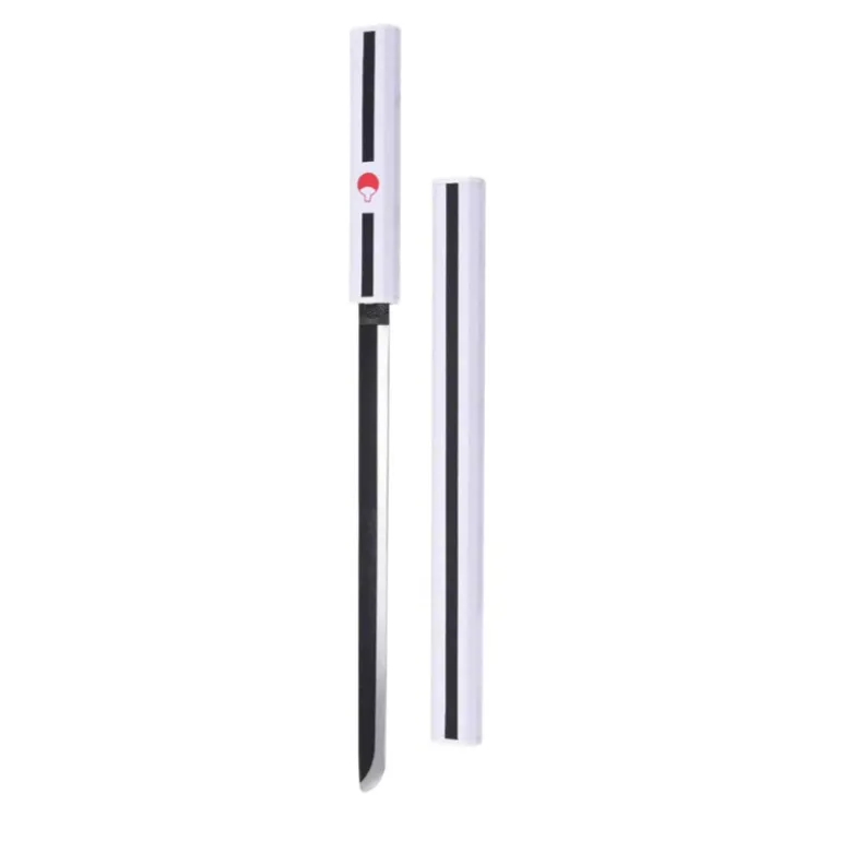 Es una réplica de la espada que lleva Sasuke Uchiha durante los episodios que mide un total de 45 cm y con la hoja de acero sin filo negra y vaina blanca.