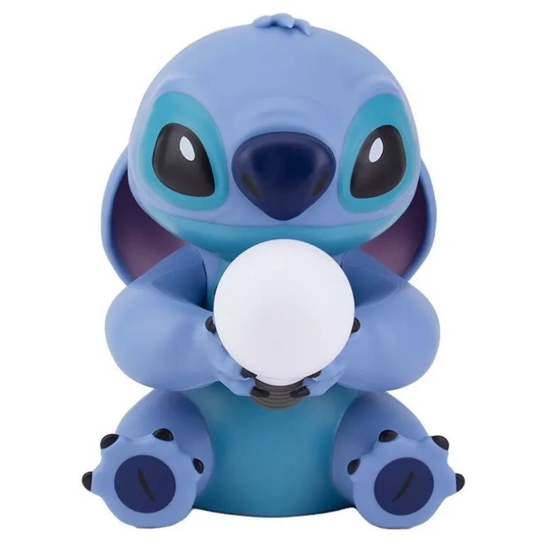 Se trata de una mini lámpara de tan solo 16 cm, proporciona una agradable luz de ambiente a cualquier habitación, pero además es una fantástica reproducción en 3D de este extraterrestre tan achuchable que es Stitch, sentadito y sosteniendo una bombilla, que es la que se ilumina. Funciona mediante dos pilas AA, pero casi no gasta, ya que utiliza LEDs.