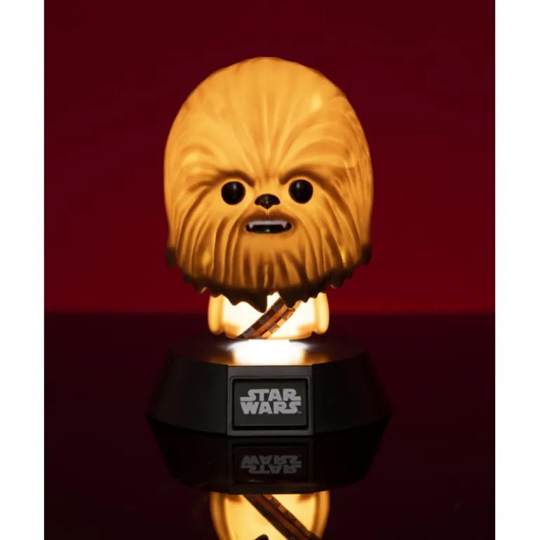 Y es que esta lámpara no es una lámpara cualquiera, es en realidad una figura luminosa muy kawaii que representa a nuestro wookiee favorito, el peludo piloto del Halcón Milenario, Chewbacca. Además, lleva el mítico logo de Star Wars serigrafiado en la base. La lámpara dos pilas AA (no incluídas). En cualquier caso consume poquísimo por su tecnología LED.