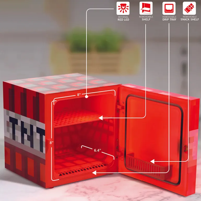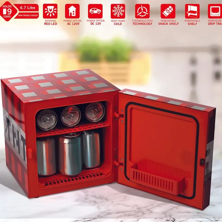 La Mini Nevera de Bloque TNT Minecraft fabricada por UKONIC ofrece una tecnología termoeléctrica fiable y eficiente para enfriar sin CFCs, garantizando un bajo impacto ambiental. Con una capacidad para 9 latas de refresco, y una capacidad interna de 6.7 L, esta mini nevera es perfecta para mantener tus bebidas frías durante horas.
