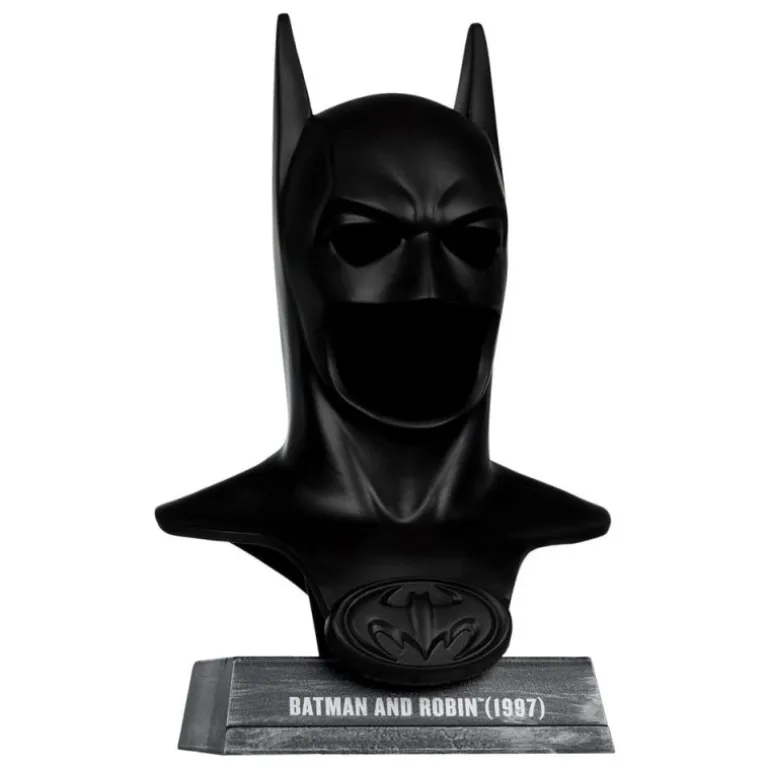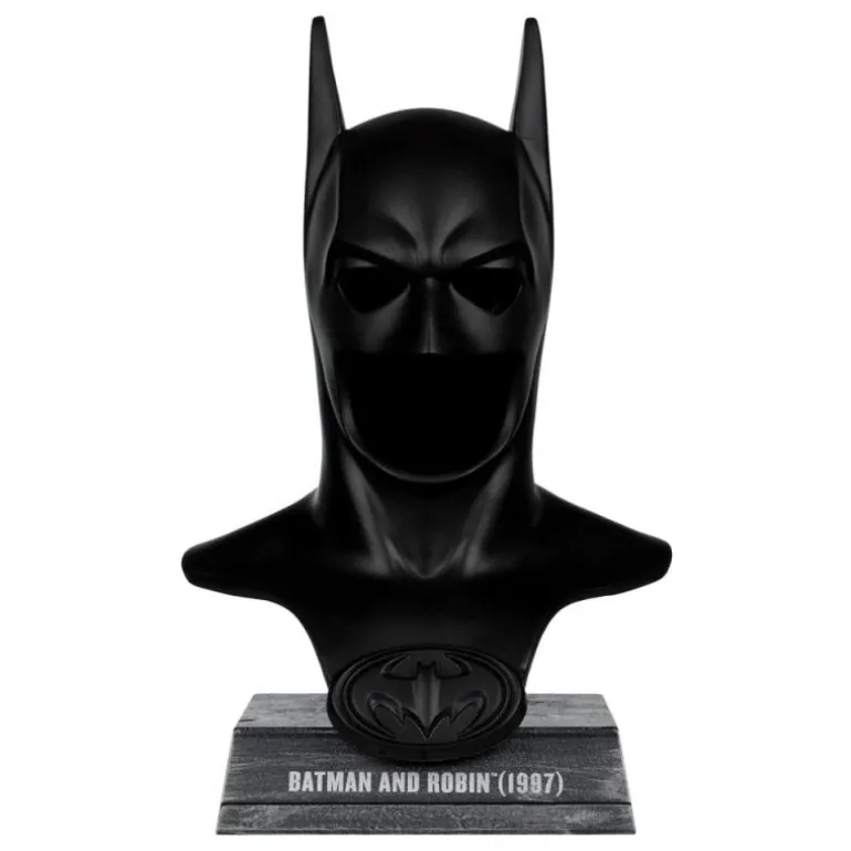 Sumérgete en el mundo de Batman con esta impresionante réplica a escala 1/3 de la icónica máscara de Batman de la película Batman y Robin (1997). Con una altura de 19 cm, esta pieza magistralmente detallada es un tributo perfecto para los verdaderos fans de DC Comics. Elaborada por McFarlane Toys, la máscara presenta un acabado negro mate que resalta sus contornos afilados y el emblemático logo de Batman en la base.
