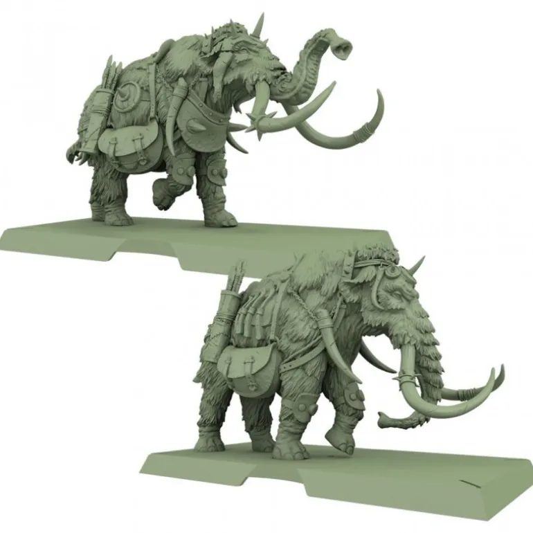 El set incluye dos miniaturas de mamut cuidadosamente esculpidas, cada una sobre una bandeja individual grande, haciendo que cada partida sea una inmersión total en el mundo de fantasía. Estas miniaturas no solo son visualmente impresionantes, sino también un complemento crucial para cualquier estratega en el juego. Con su resistencia y fuerza, los mamuts son ideales para aquellos que buscan dominar las líneas enemigas.