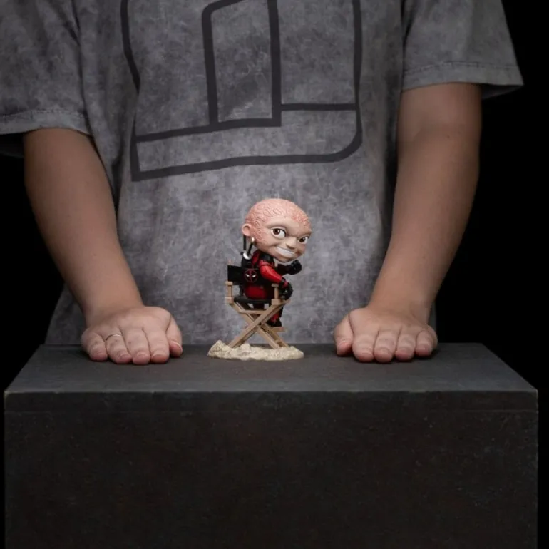 Descubre la increíble minifigura de Deadpool Sin Máscara de la renombrada línea Mini Co. de Iron Studios. Esta figura de PVC mide aproximadamente 13 cm de altura y presenta un diseño detallado y único que captura la esencia del antihéroe más sarcástico de Marvel. Deadpool está sentado de manera relajada en una silla de director, añadiendo un toque humorístico y distintivo a la colección.