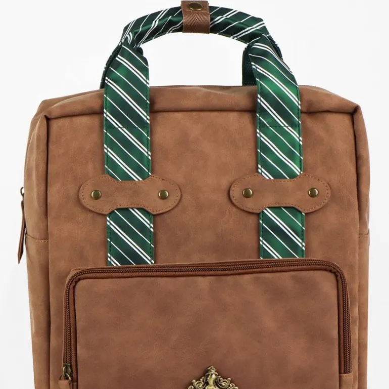Descubre la mochila casual de polipiel inspirada en la casa de Slytherin de Harry Potter. Esta elegante mochila marrón está confeccionada al 100% en poliuretano, lo que le otorga un acabado similar al cuero, resistente y de alta calidad.