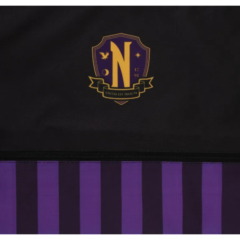 Es un saco ideal para tus cositas esenciales, grimorios y pociones mágicas varias incluidas. Y su diseño es una maravilla, inspirado en el uniforme de deporte de la academia Nevermore a la que asiste Wednesday, tal como hizo su madre, con el escudo de la misma estampado. Tiene unos acabados fantásticos y está realizado en materiales de primera calidad.