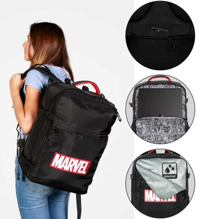 La Mochila de Viaje Mercury Grande Negro Marvel Comic es una solución de alta calidad para aquellos que buscan una forma eficiente y estilizada de viajar. Con un diseño que combina funcionalidad y estilo, esta mochila se presenta como una alternativa ideal a las tradicionales maletas de cabina, especialmente diseñada para quienes desean llevar lo necesario sin sacrificar el espacio o la comodidad.