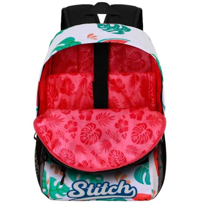 Explora la magia de Disney con esta mochila de Lilo y Stitch, un diseño multicolor vibrante y divertido que encantará a los aficionados. La mochila presenta una imagen encantadora de Stitch sosteniendo una rana, rodeada de estampados de hojas tropicales y sandías. Diseñada para la vida urbana, esta mochila ligera cuenta con un compartimento principal amplio, dos bolsillos frontales y dos laterales de malla, perfectos para mantener todo organizado. En el interior, un forro colorido y un bolsillo acolchado protegen tus dispositivos electrónicos. Las correas acolchadas y ajustables aseguran comodidad, mientras que la cinta trasera se adapta a trolleys, facilitando tus viajes. Dimensiones: 44 x 31 x 18 cm.