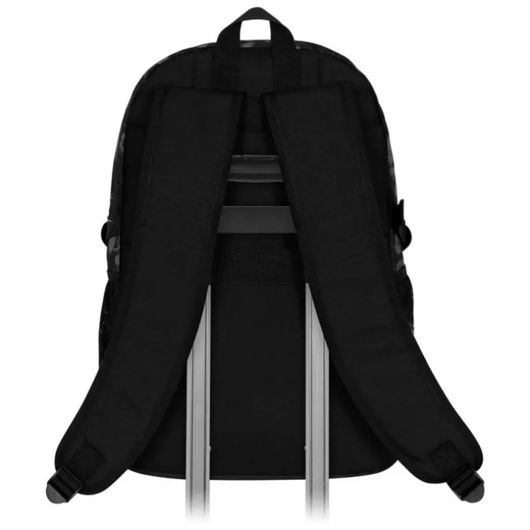 Descubre la mochila urbana Disney Mickey Mouse Year Mochila Fight FAN 2.2 en color negro, ideal para los entusiastas de Mickey. Con un diseño elegante y juvenil, presenta el icónico rostro de Mickey en la parte frontal sobre un fondo negro decorado con numerosas imágenes del personaje en tonalidades grises. Su funcionalidad se complementa con un amplio compartimento principal, dos bolsillos frontales para acceso rápido y dos bolsillos laterales de malla perfecta para botellas de agua.