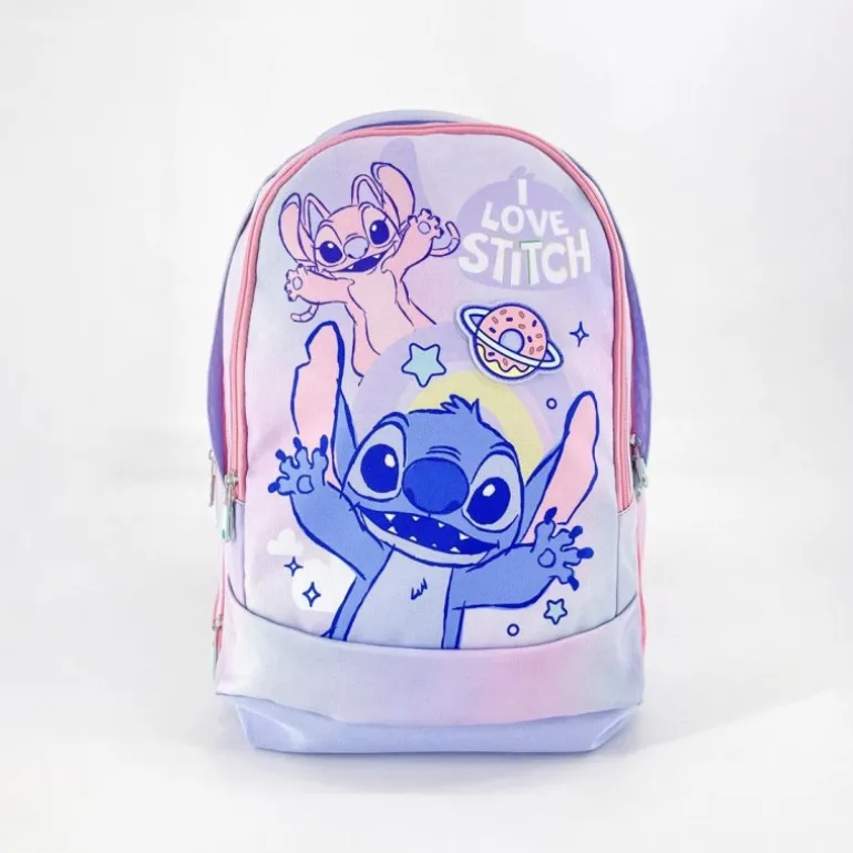 La mochila escolar mediana de Stitch es perfecta para los más pequeños. Con un diseño encantador en tonos lila, muestra a Stitch junto a planetas y estrellas en un estilo alegre y vibrante. Fabricada en 100% poliéster, esta mochila es tanto ligera como duradera. Cuenta con múltiples compartimentos con cremalleras rosa, ideales para organizar libros, cuadernos y meriendas. La parte trasera está acolchada con un diseño de malla para ofrecer comodidad durante el uso diario. Las correas ajustables permiten adaptarse a la altura del niño, lo que la hace práctica y funcional.