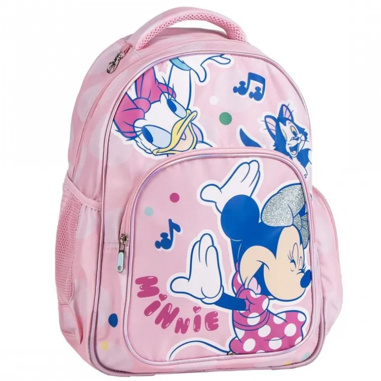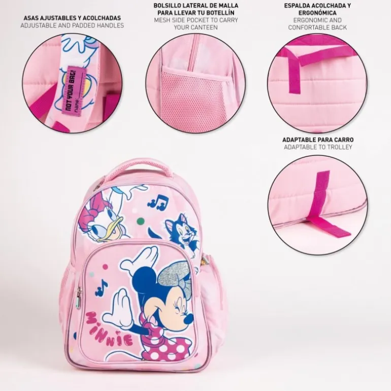 Descubre la encantadora mochila escolar de Minnie, perfecta para acompañar a los más pequeños en sus aventuras diarias. Con un vibrante color rosa, esta mochila está decorada con imágenes de Minnie y sus amigos, lo que la convierte en un accesorio ideal para los admiradores de estos personajes entrañables.