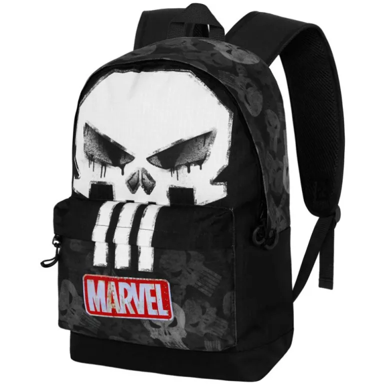 La Mochila HS FAN 2.2 en color negro, inspirada en el emblemático personaje Marvel Punisher, combina funcionalidad y un diseño atractivo para el usuario urbano moderno. Este producto se presenta como una opción ideal para aquellos que buscan una mochila que no solo sea práctica, sino que también exprese su pasión por el universo Marvel.