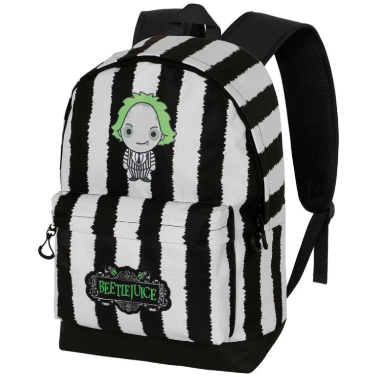 La Mochila HS FAN Bitelchús / Beetlejuice Stripes es un producto excepcional que combina funcionalidad, resistencia y un diseño único inspirado en el icónico personaje de la cultura pop, Beetlejuice. Con su llamativa estética de rayas negras y blancas, esta mochila no solo es un accesorio de moda, sino también un elemento destacado para quienes buscan expresar su personalidad y pasión por el cine.