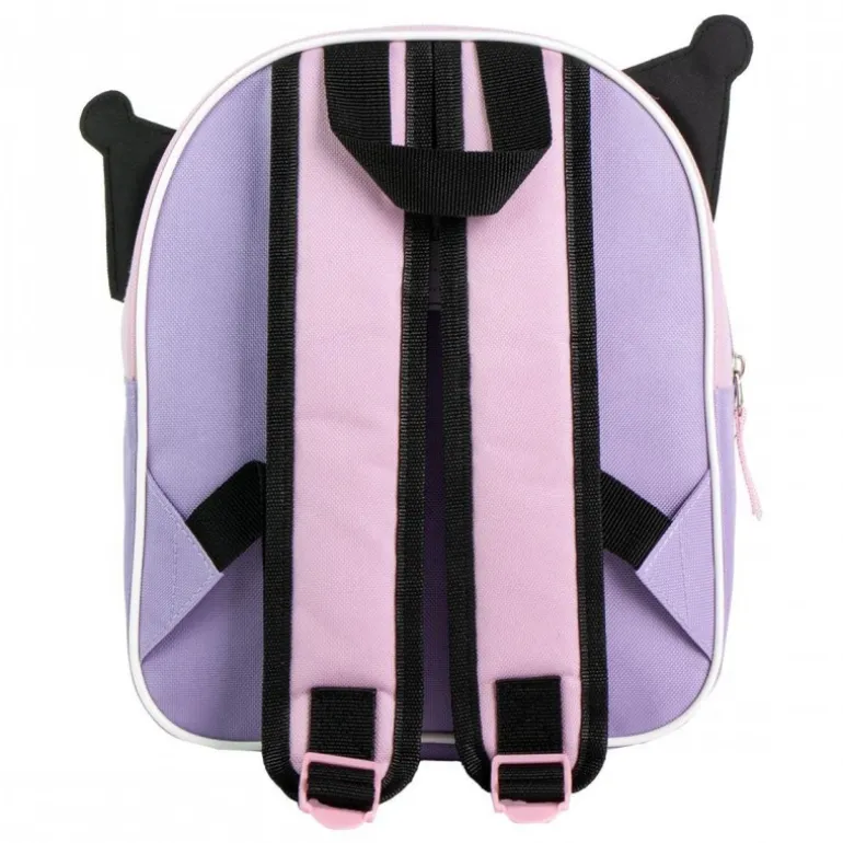 La mochila infantil 3D de Hello Kitty y Kuromi es el complemento perfecto para los más pequeños. Con un diseño encantador y lleno de personalidad, esta mochila destaca por su aplicación 3D que da vida al personaje de Kuromi, resaltando su lazo morado y detalles negros que sobresalen en las esquinas superiores. El color púrpura predominante crea un fondo atractivo que combina con toques de rosa pastel, aportando un estilo único y llamativo.