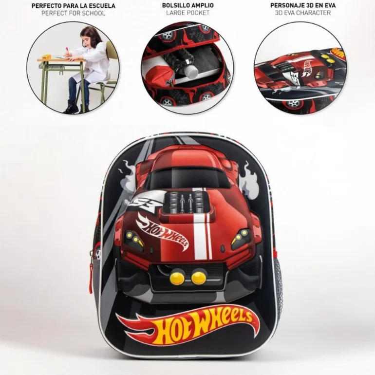 Descubre la mochila infantil 3D Hot Wheels, ideal para los pequeños amantes de los coches. Esta mochila destaca por su diseño en 3D de un coche de carreras impresionante en tonos rojos y negros, acompañado del icónico logo Hot Wheels en la parte frontal. Fabricada con un 67% de poliéster y un 33% de EVA, ofrece durabilidad y resistencia, perfecta para el uso diario.